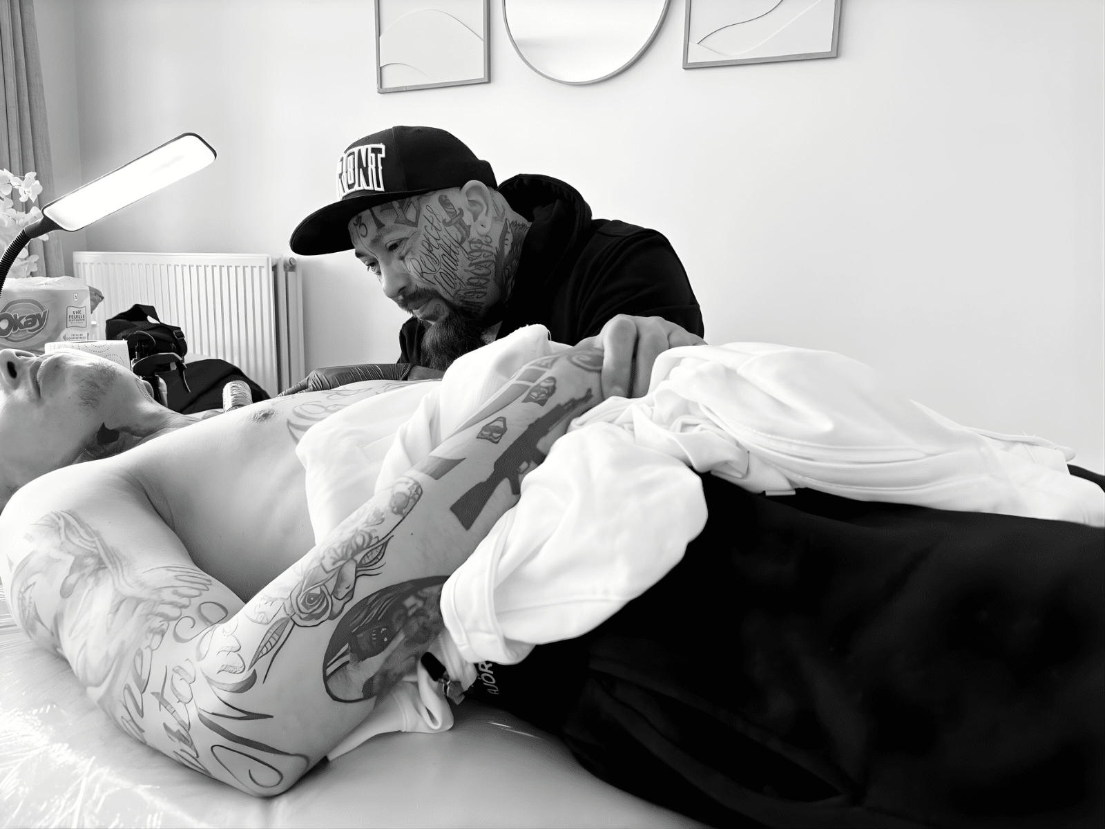 En terwijl Roberto het creatieve vakwerk levert, zorgen wij ervoor dat jij je helemaal op je gemak voelt. We nemen de tijd voor je, beantwoorden je vragen en snappen dat een tattoo meer is dan alleen inkt.